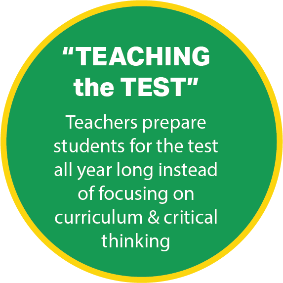 When school funding, salary, and career advancement are tied to student test scores, it’s inevitable that many teachers and administrators turn their focus to “TEACHING THE TEST”.